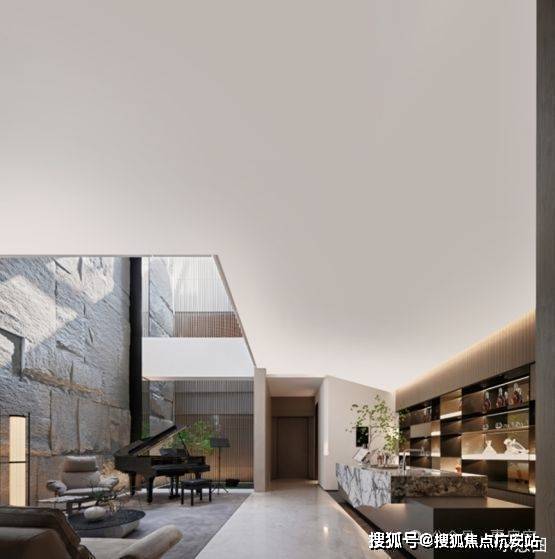 下,是含夹层的创新负一层。近2个基准楼层的挑高尺度,让空间得以垂直生长。它可以是私人影院、藏品书房,或是一处不为外界打扰的家族起居厅。